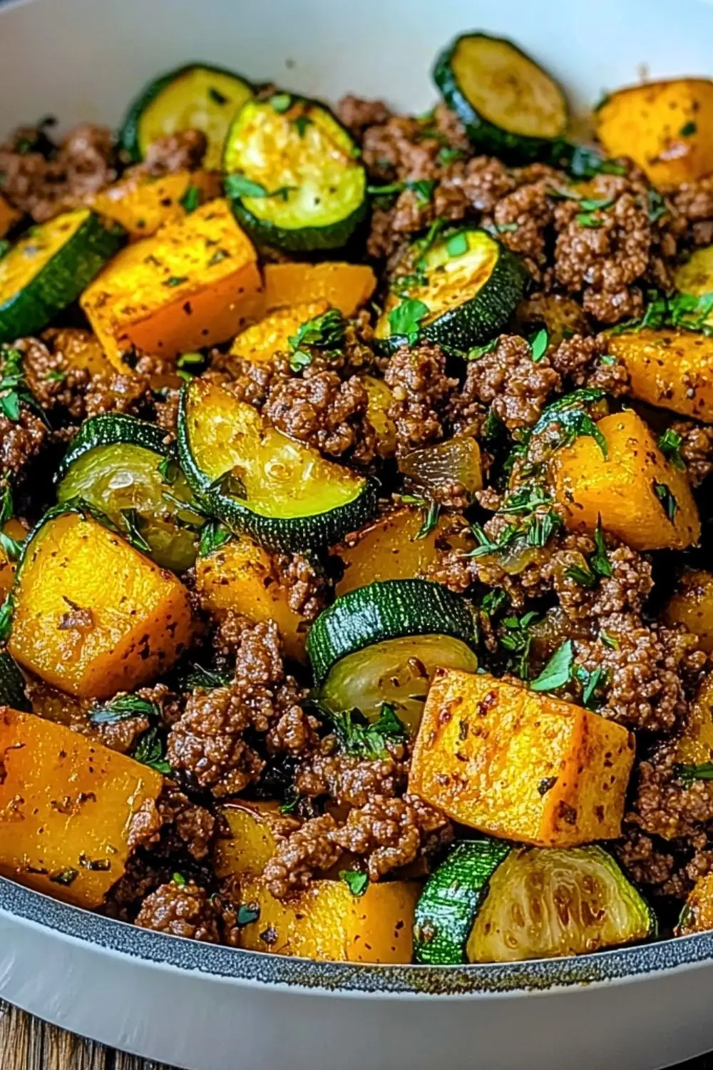 This vibrant Sweet Potato & Zucchini Ground Beef Skillet is a hearty and wholesome one-pan meal that brings together earthy sweetness, savory depth, and fresh …