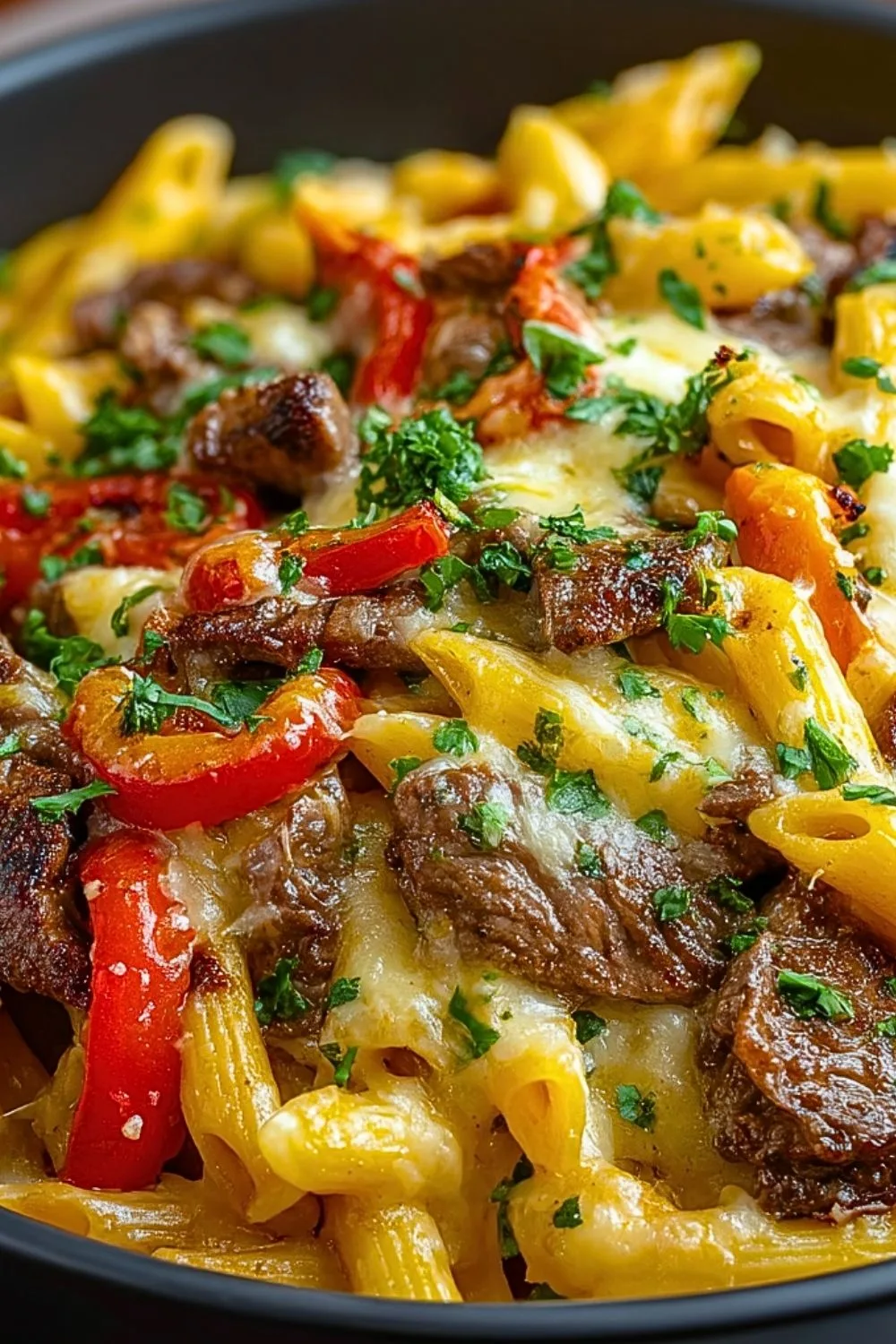 Imagine all the bold, savory flavors of a classic Philly cheesesteak—tender strips of beef, melty cheese, and sautéed peppers—woven seamlessly into a rich, creamy pasta …