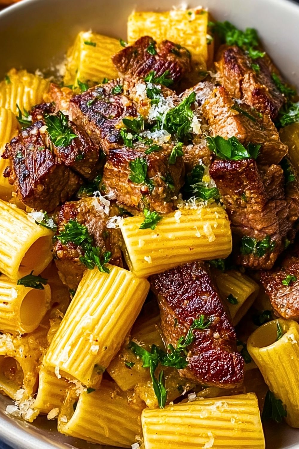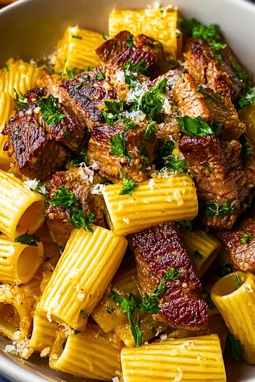 Picture this: tender, juicy cubes of steak seared to perfection, nestled among al dente rigatoni pasta, all coated in a luscious, savory garlic butter sauce. …