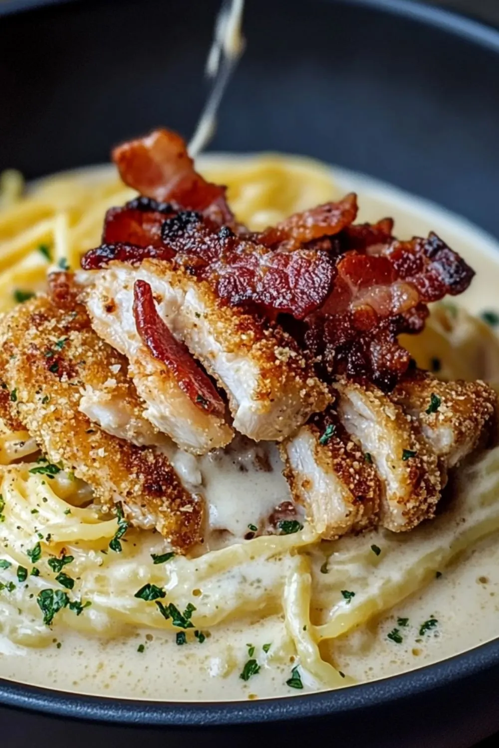 This Creamy Carbonara with Crispy Chicken & Bacon is the ultimate comfort food experience in one dish. Imagine perfectly cooked spaghetti wrapped in a rich, …