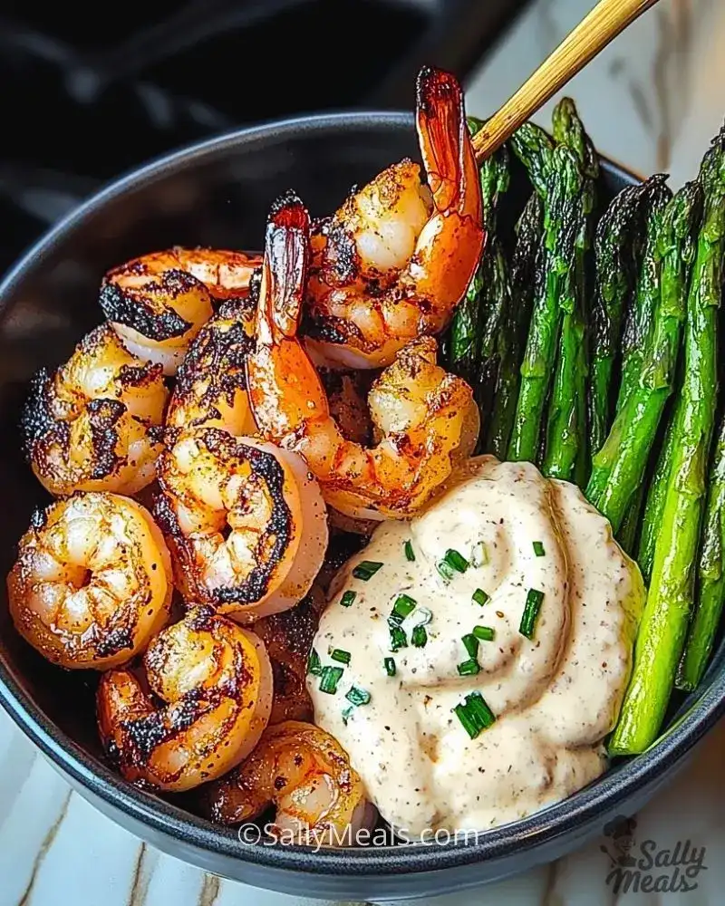 I’m absolutely obsessed with meals that are packed with flavor but don’t take forever to prepare—and this Grilled Shrimp Bowl with Asparagus & Creamy Garlic …