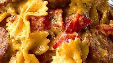 Easy Creamy Velveeta Chicken Bowtie Pasta with Garlic Mozzarella Sauce