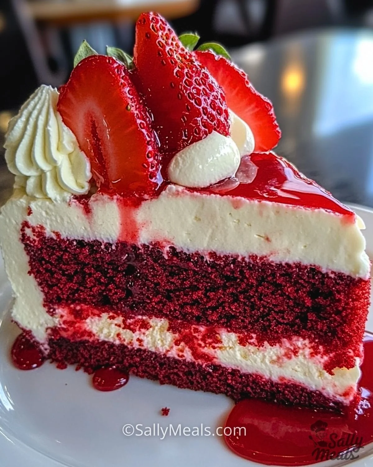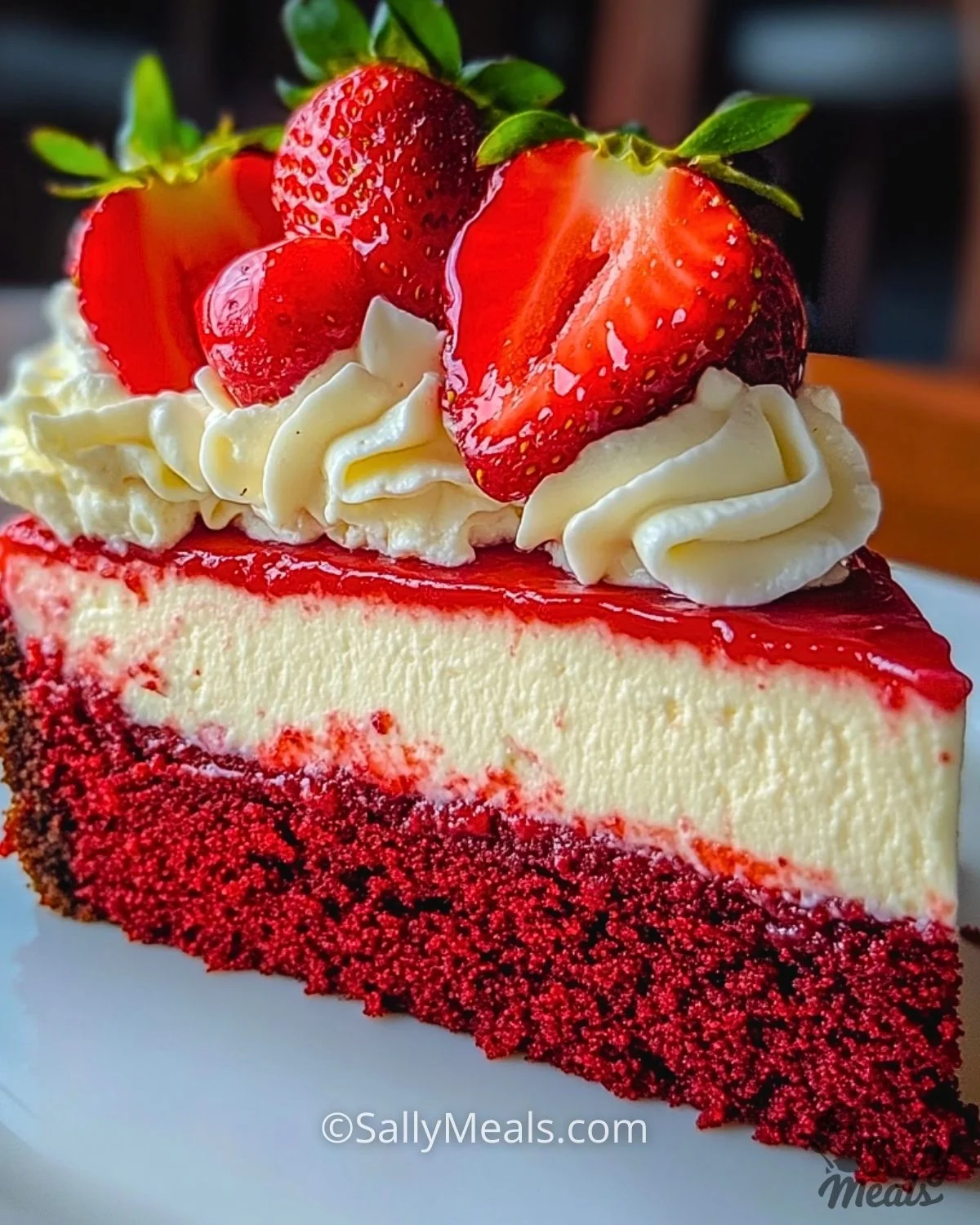 Indulge in the ultimate dessert combination with this Strawberry Red Velvet Cheesecake, where rich red velvet cake meets creamy cheesecake and a luscious strawberry topping. …