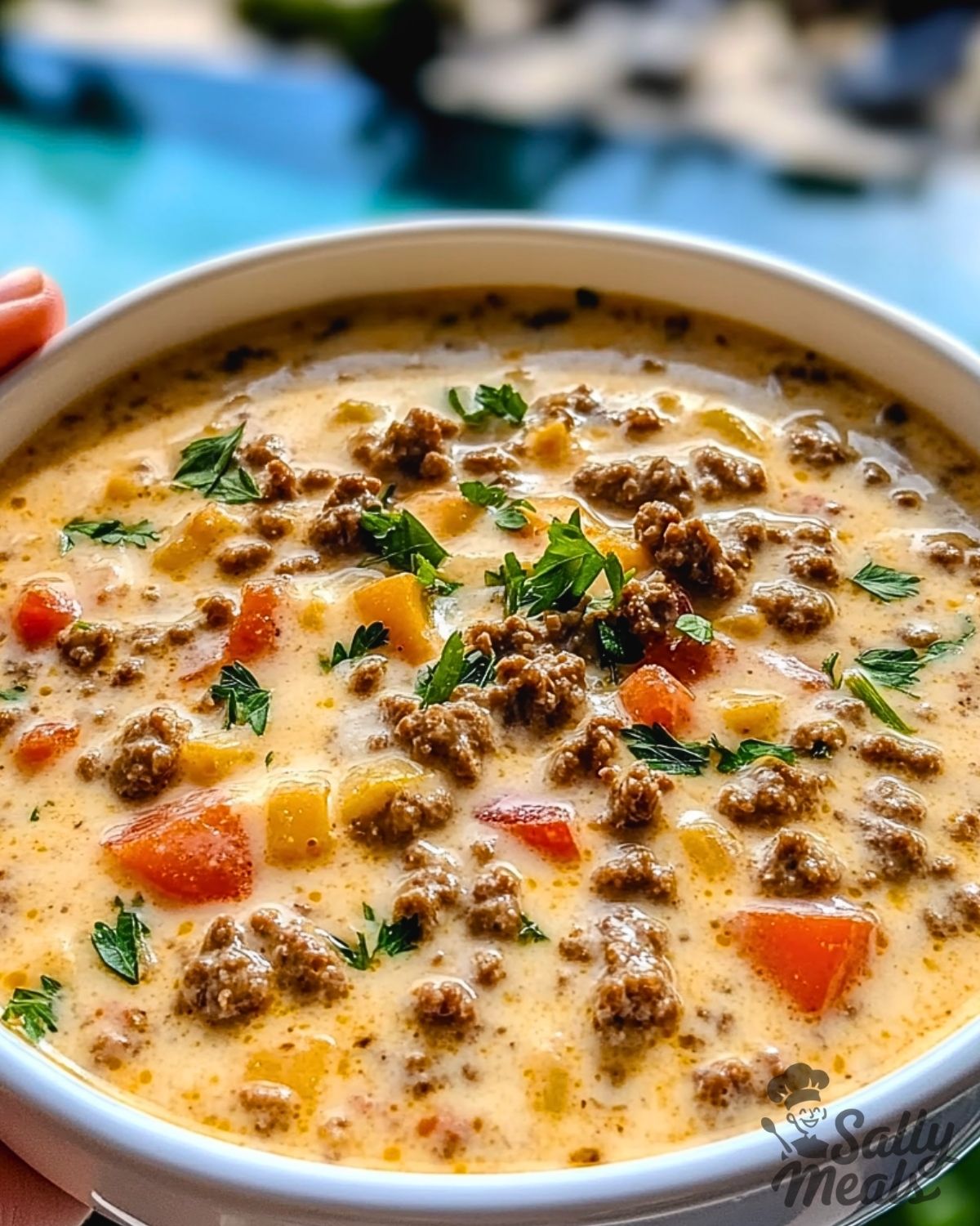 Indulge in a bowl of rich and creamy Cheeseburger Soup, packed with the classic flavors of a juicy cheeseburger in a warm, comforting form. This …
