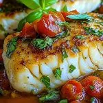 Golden, flaky cod fillets nestled in a garlicky, fresh tomato and basil sauce—this Pan-Seared Mediterranean Cod in Tomato Basil Sauce is an easy recipe that brings restaurant-quality flavor straight to your kitchen. Perfect for a quick dinner, healthy lunch, or even impressive date-night meal, this dish delivers a beautiful balance of bright herbs, tender fish, and juicy tomatoes. It’s one of those go-to food ideas when you need something simple, nourishing, and full of flavor. With Mediterranean ingredients and quick cooking time, it’s ideal for your healthy snack or dinner ideas collection.