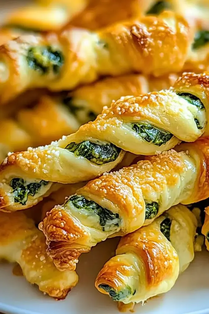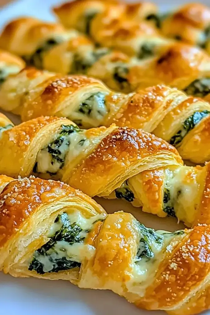 Parmesan and Spinach Cheese Twists are golden, crisp pastries filled with a creamy, cheesy spinach mixture — perfect for appetizers, snacks, or party platters. Simple to make yet delightfully elegant, these savory twists are sure to impress family and guests alike.