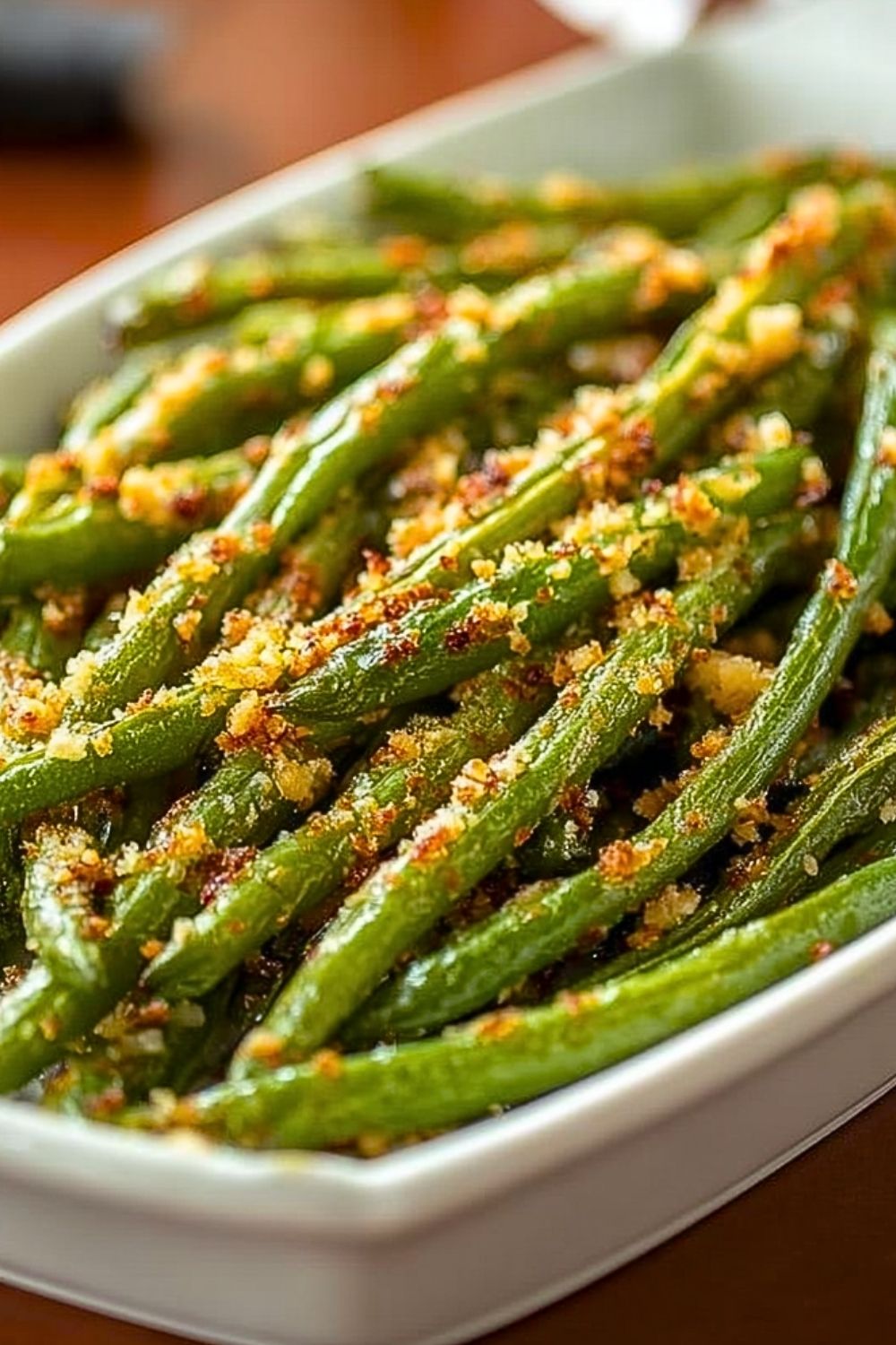 Transfer the roasted green beans to a serving dish and serve immediately while hot and crispy. This dish is best enjoyed fresh, as the texture is at its peak right out of the oven.