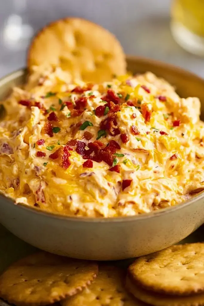 Classic butter crackers or saltines are perfect for scooping. They let the flavor of the cheese shine.