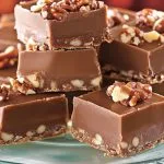 Sprinkle the reserved pecans on top while the fudge is still warm. Gently press them down so they stick.