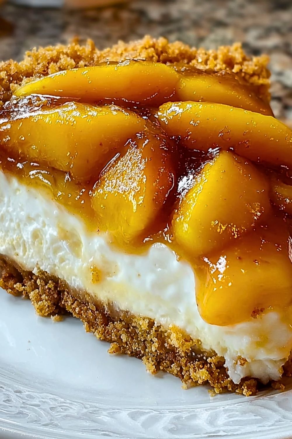 - Cool the Peach Topping Before Assembling: Hot peaches can melt the cheesecake layer and ruin the structure.
