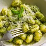 The beauty of this dish is how quickly it comes together. Cooking the gnocchi takes just 2 to 3 minutes once the water is boiling—simply wait for them to float. The pesto itself can be made in under 10 minutes, especially if you’re using a food processor. Tossing the gnocchi in the sauce and warming everything through adds another 2 to 3 minutes. Altogether, you’re looking at about 15 minutes total cook time.