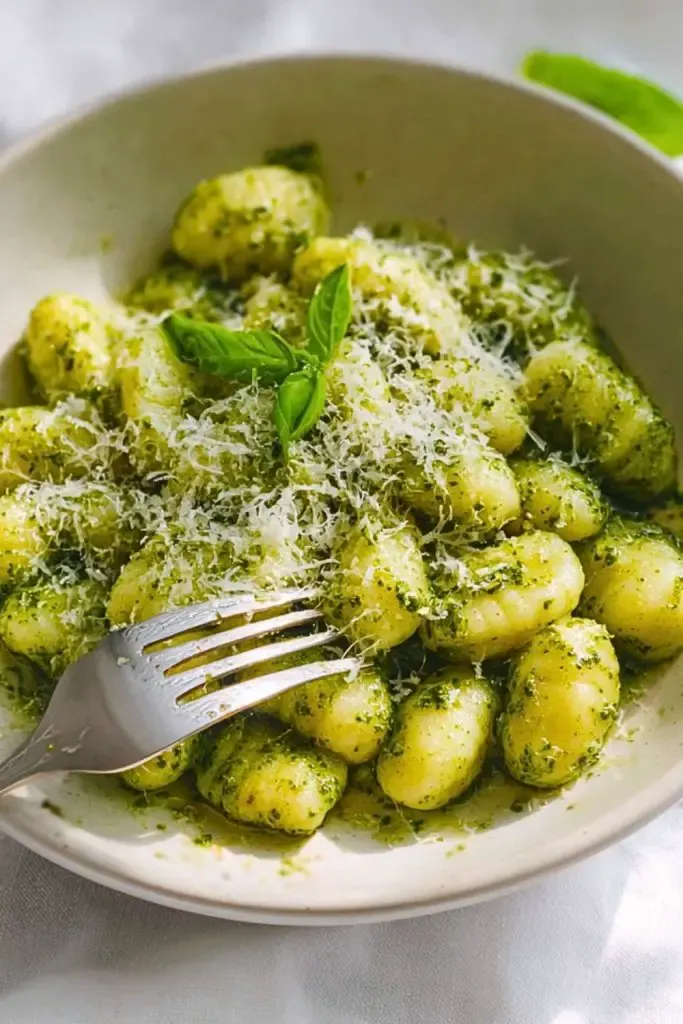 Pesto gnocchi is best enjoyed fresh, but leftovers can be stored. Place any remaining gnocchi in an airtight container and refrigerate for up to 3 days. When reheating, do so gently in a skillet over low heat with a splash of water or broth to loosen the sauce. Avoid microwaving if possible, as it can make the gnocchi rubbery.