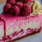 I have a weakness for all things pink, creamy, and fruity—so naturally, this Pink Velvet Raspberry Cheesecake has earned a permanent spot in my dessert rotation. It’s not just a pretty slice; it’s a rich and silky cheesecake infused with tart raspberry notes, a hint of vanilla, and a luscious velvet-pink hue that makes it almost too beautiful to eat. The flavor is layered: a buttery graham crust, a tangy-sweet raspberry cream cheese filling, and a smooth pink glaze on top. I love how each bite melts on the tongue, delivering just enough tang to balance out the sweetness.