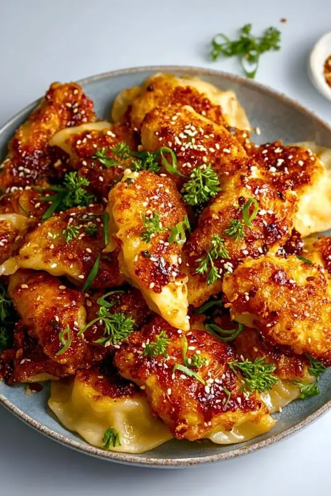 Crispy on the outside, creamy on the inside, these Spicy Garlic Butter Potato Pierogi are pan-seared and tossed in a rich butter sauce with garlic, chili flakes, and soy sauce, then topped with sesame seeds and herbs. A bold and easy comfort dish.