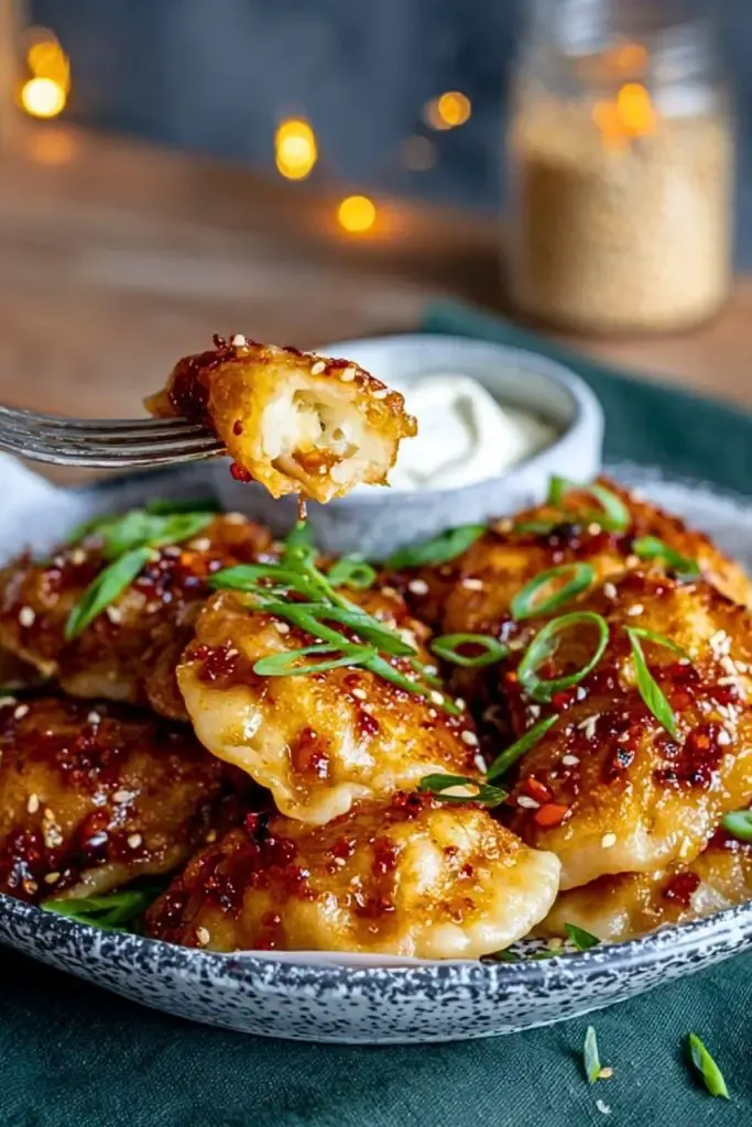 These pierogi are not your typical dumplings. The contrast between the crispy golden exterior and soft, garlicky interior is reason enough to fall in love. But when you add the heat from chili flakes and the deep umami of soy sauce and butter, they become completely next-level. It's comfort food with attitude—perfect for weeknight dinners or a casual gathering where everyone ends up asking for the recipe.