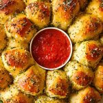What I really enjoy about this recipe is how deceptively easy it is. Using store-bought dough or biscuit dough makes it accessible even for novice bakers, but the final result looks like you’ve spent hours in the kitchen. It’s garlicky, buttery, fluffy on the inside, and crisp on the outside—all the things we want in a bread appetizer. Plus, that marinara center? Pure magic.