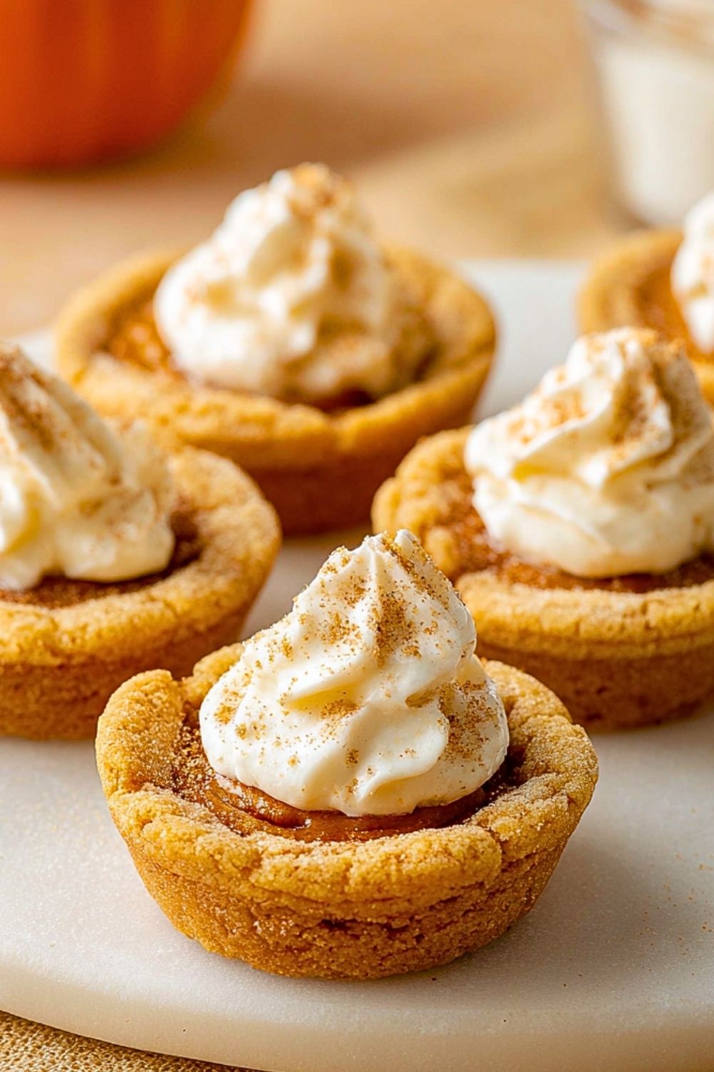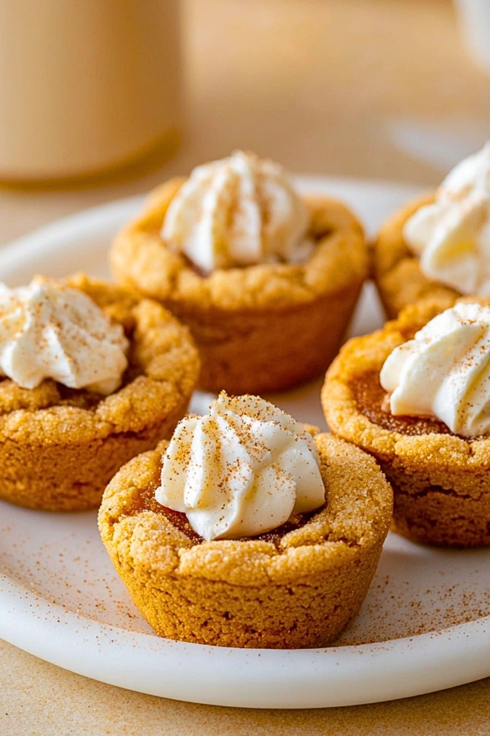 These cookie cups are a playful twist on classic pumpkin pie. Instead of a traditional crust, they’re nestled into golden brown sugar cookie shells that add a sweet, chewy contrast to the silky pumpkin filling. Topped with a swirl of whipped cream and a sprinkle of cinnamon, they look like mini pies but eat like the best soft cookie ever. Perfect for anyone who wants the flavor of pumpkin pie without the fuss of rolling dough.
