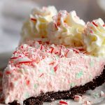 8. Before serving, top with extra whipped topping and sprinkle with crushed peppermint candy. Slice and serve!