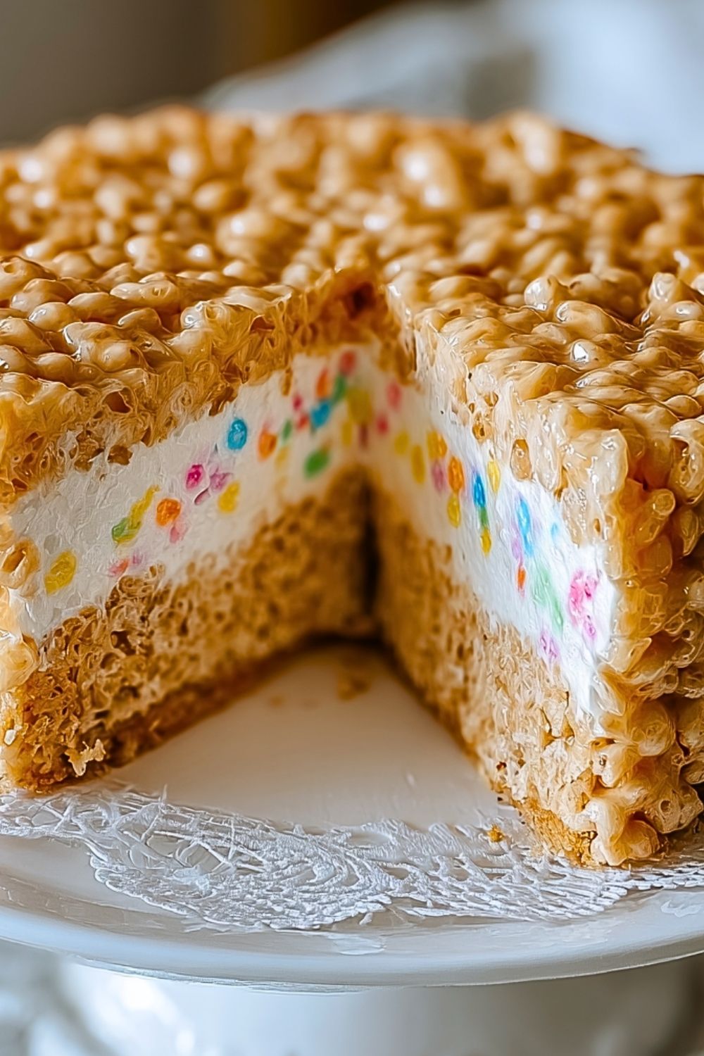 The texture alone is worth it: crunchy and chewy from the cereal layers, and fluffy and smooth from the filling. Plus, it holds its shape beautifully, making it ideal for slicing and serving.