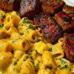 Rigatoni in Garlic Butter Parmesan Cream Sauce with Cajun Steak Tips is a next-level comfort meal that brings bold flavor and creamy decadence to your dinner table. With tender Cajun steak, perfectly cooked pasta, and a sauce you’ll want to lick off the plate, this dish delivers both richness and balance. It’s approachable enough for a weeknight but impressive enough to serve at a dinner party. Once you try it, it just might earn a permanent spot in your recipe rotation.