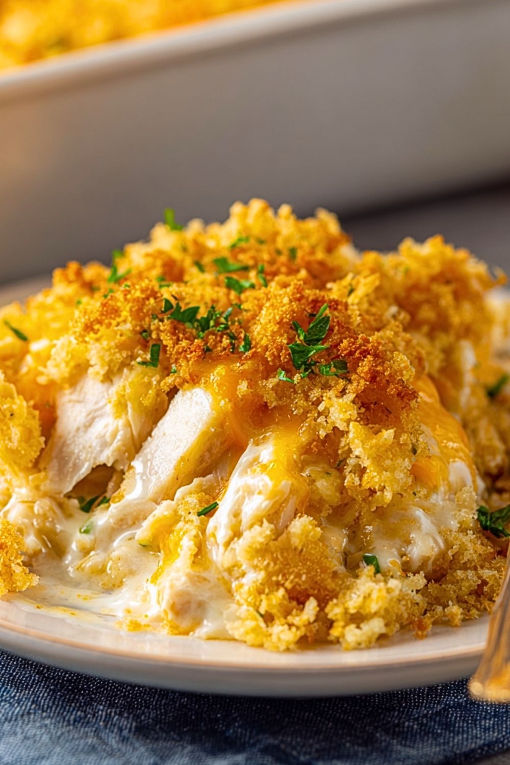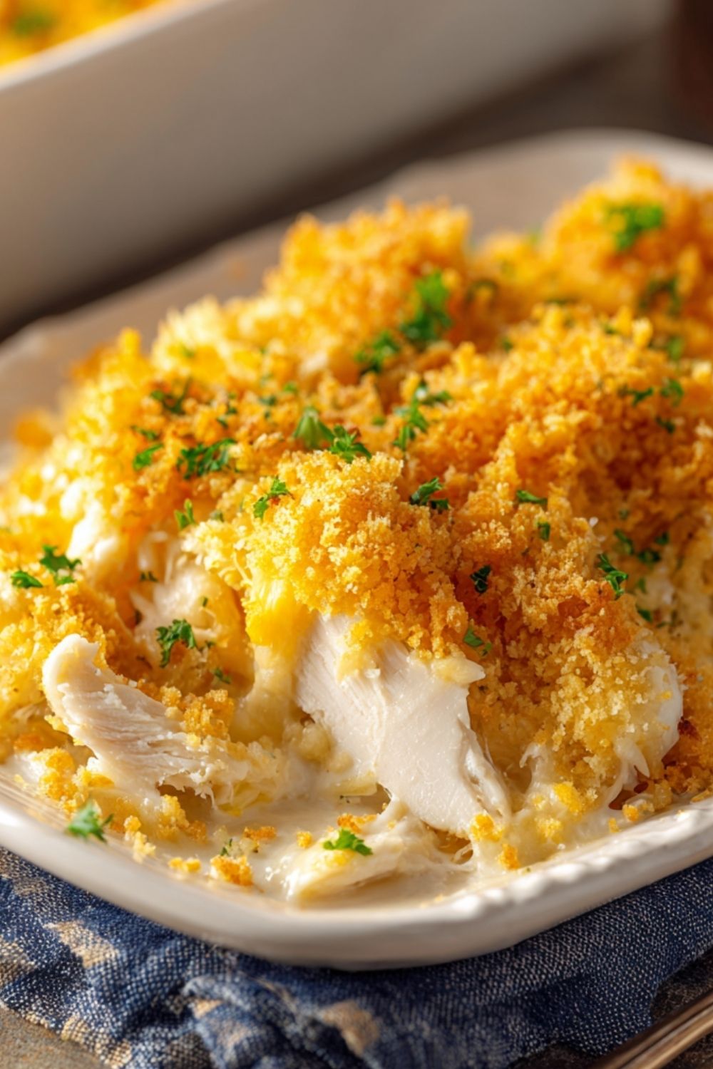 This casserole is highly forgiving and easy to tweak depending on what you have in your fridge. You can use leftover turkey instead of chicken, or swap in cream of mushroom or cream of celery soup for a different flavor. For a slightly healthier version, opt for light sour cream and reduced-fat cheese. The buttery cracker topping gives a beautiful crunch, but if you’re avoiding gluten, you can substitute with gluten-free crackers or crushed cornflakes.