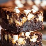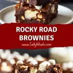 Keywords: rocky road brownies, easy brownie recipe, chocolate dessert, party dessert, fudgy brownies