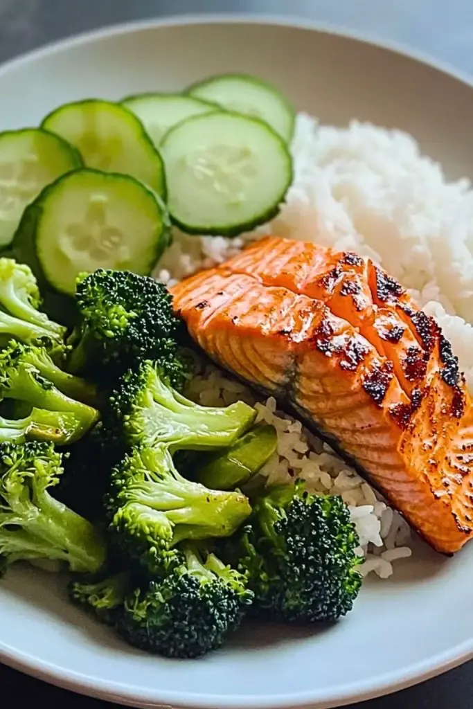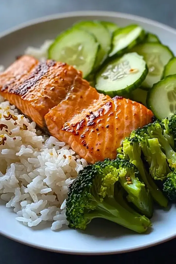 This vibrant, nutritious plate brings together tender, pan-seared salmon, fluffy rice, crisp-tender broccoli, and cooling cucumber. It’s a balanced, colorful, and wholesome meal perfect for any day of the week.