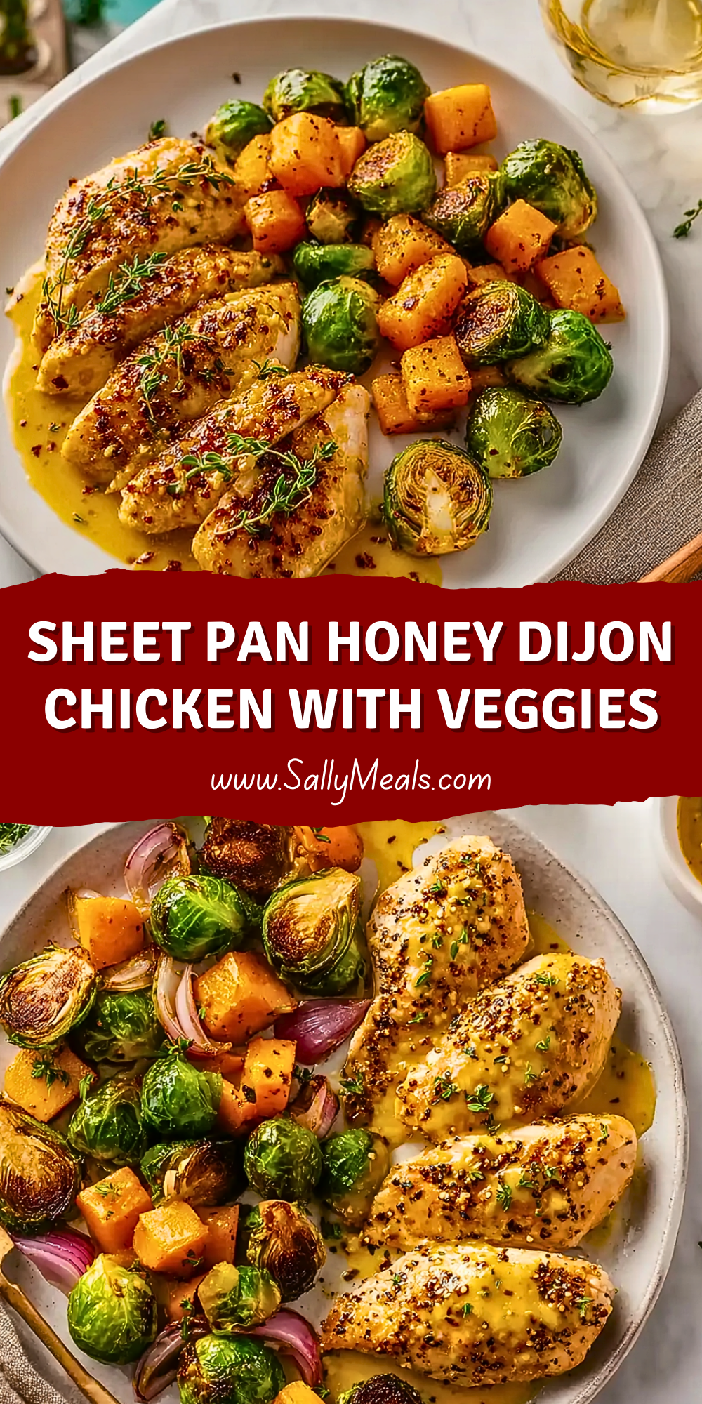 Keywords: sheet pan chicken, honey dijon chicken, easy dinner recipe, healthy dinner ideas, sheet pan meal