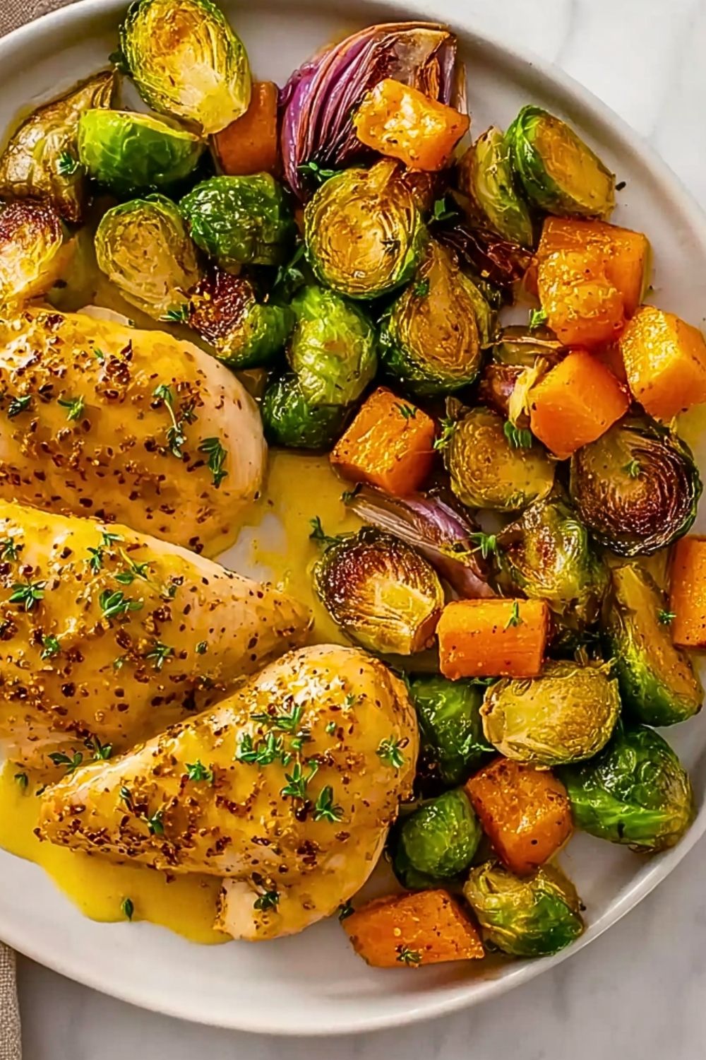 I first made this recipe on a busy Tuesday evening when I had little time and even less energy. I threw together what I had in the fridge, whisked up a quick honey mustard sauce, and tossed everything on a sheet pan. The result was golden, juicy chicken surrounded by caramelized veggies with crispy edges and a burst of flavor in every bite. Since then, it’s become a regular in my rotation — easy, healthy, and totally crave-worthy.