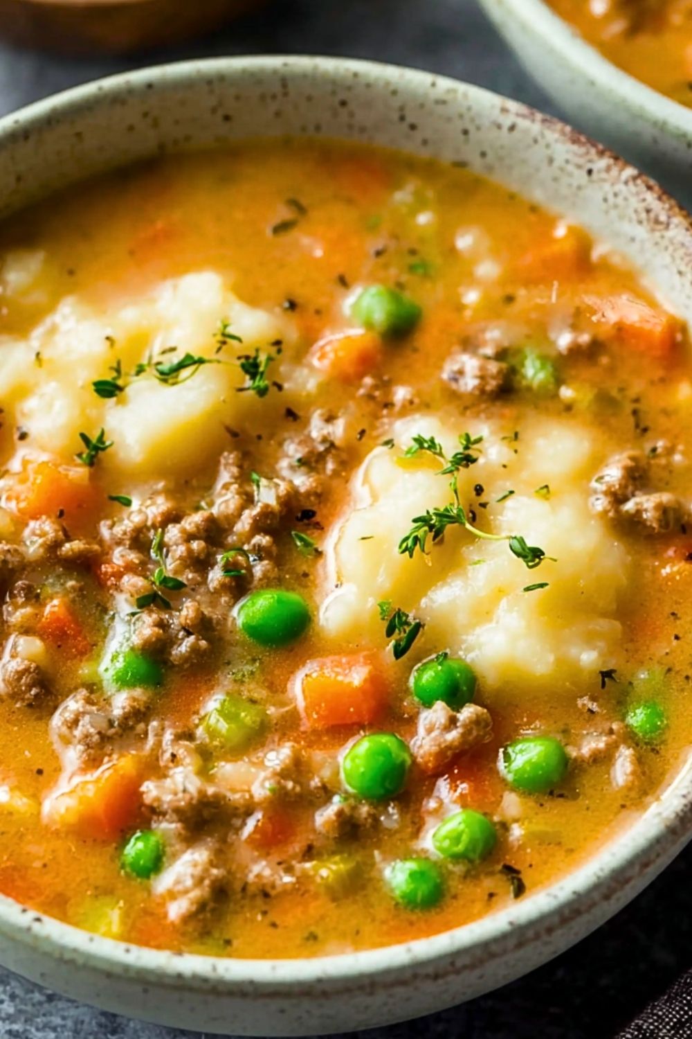 Creamy, comforting, and packed with flavor—Shepherd's Pie Soup brings all the hearty magic of the classic casserole into a cozy, spoonable form. This soup is a warm embrace in a bowl, loaded with tender ground beef, sweet peas, soft carrots, and a creamy potato finish that will instantly make you feel at home. It’s everything you love about Shepherd’s Pie, simplified into a one-pot wonder that’s perfect for chilly evenings or easy weeknight dinners.