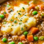 Begin by browning your ground beef thoroughly to build a rich base of flavor. Be sure to drain excess grease to avoid an overly oily soup. Chop vegetables into uniform, bite-sized pieces for even cooking and better texture. Use broth or stock that’s rich in flavor to elevate the entire soup. For the mashed potato topping, use creamy Yukon Golds or Russets, and don’t forget to season well. A quick tip: you can even use leftover mashed potatoes to save time. Finally, let the soup simmer gently to allow all the flavors to meld together beautifully.