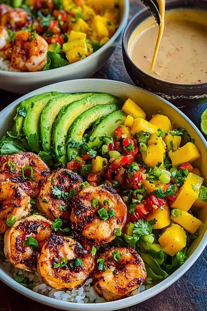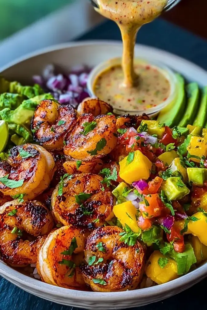 There’s something undeniably satisfying about building a vibrant bowl full of bold, zesty flavors and fresh textures. These Shrimp and Avocado Bowls with Mango Salsa & Lime-Chili Sauce are a coastal dream come to life — juicy, smoky grilled shrimp nestled on a bed of fluffy rice, paired with creamy avocado slices, and topped with a punchy mango salsa that balances sweetness and acidity. A generous drizzle of creamy, spicy lime-chili sauce ties everything together into one crave-worthy bowl.