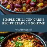 The Simple Chili Con Carne Recipe Ready in No Time is a hearty, satisfying dish that's perfect for busy nights, family meals, or even a cozy weekend get-together. With its rich flavors, customizable ingredients, and easy steps, you can have a bowl of chili that rivals the best slow-simmered recipes, but in a fraction of the time. Serve it with your favorite sides and enjoy!