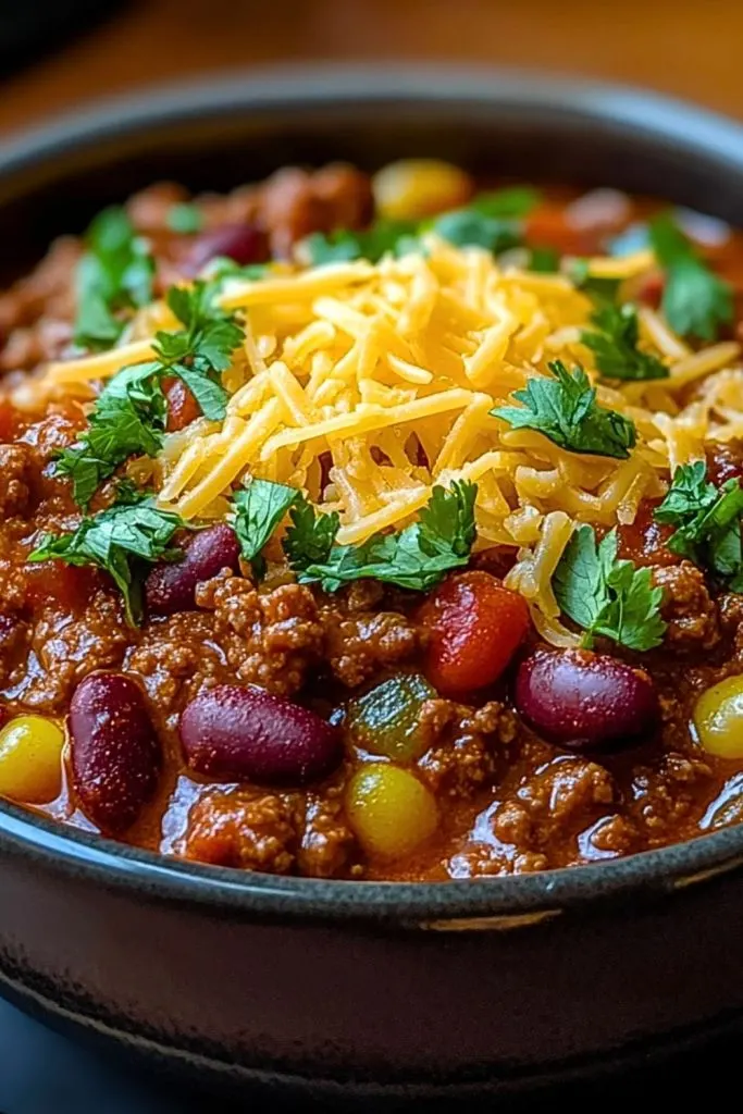 With just a few pantry staples and minimal prep time, you can create a robust, satisfying dish that tastes like it’s been simmering for hours. Topped with a handful of sharp cheddar cheese and fresh cilantro, every bite offers a comforting balance of textures and tastes that will keep everyone coming back for more.
