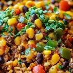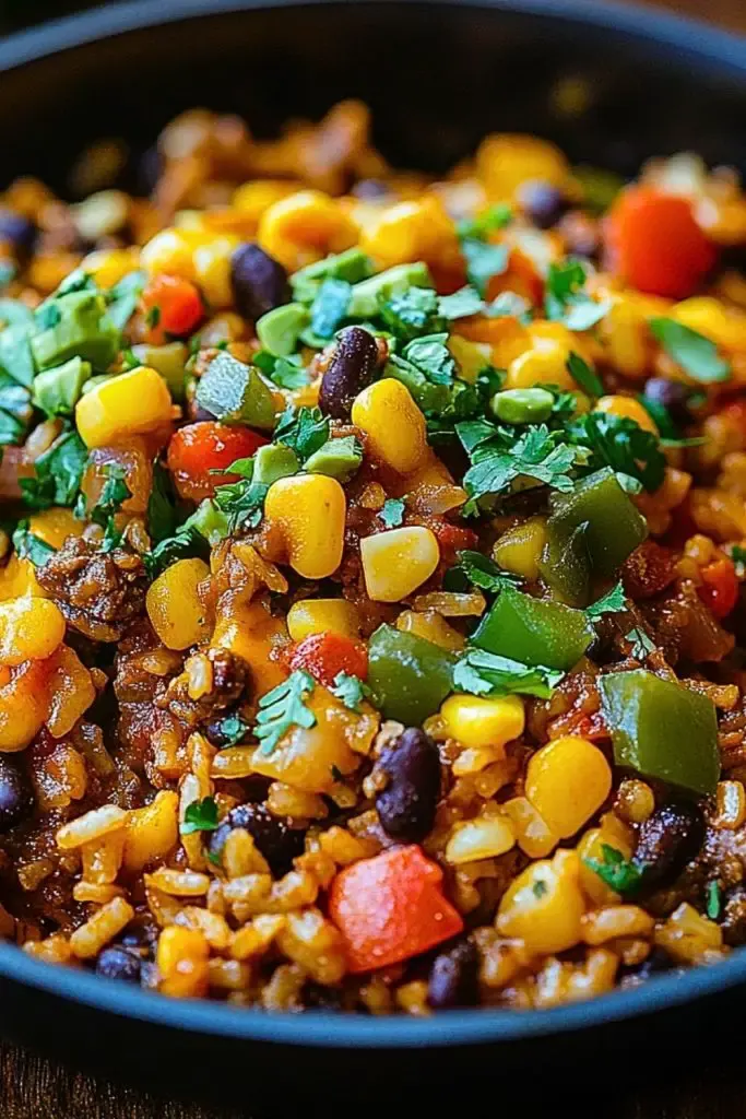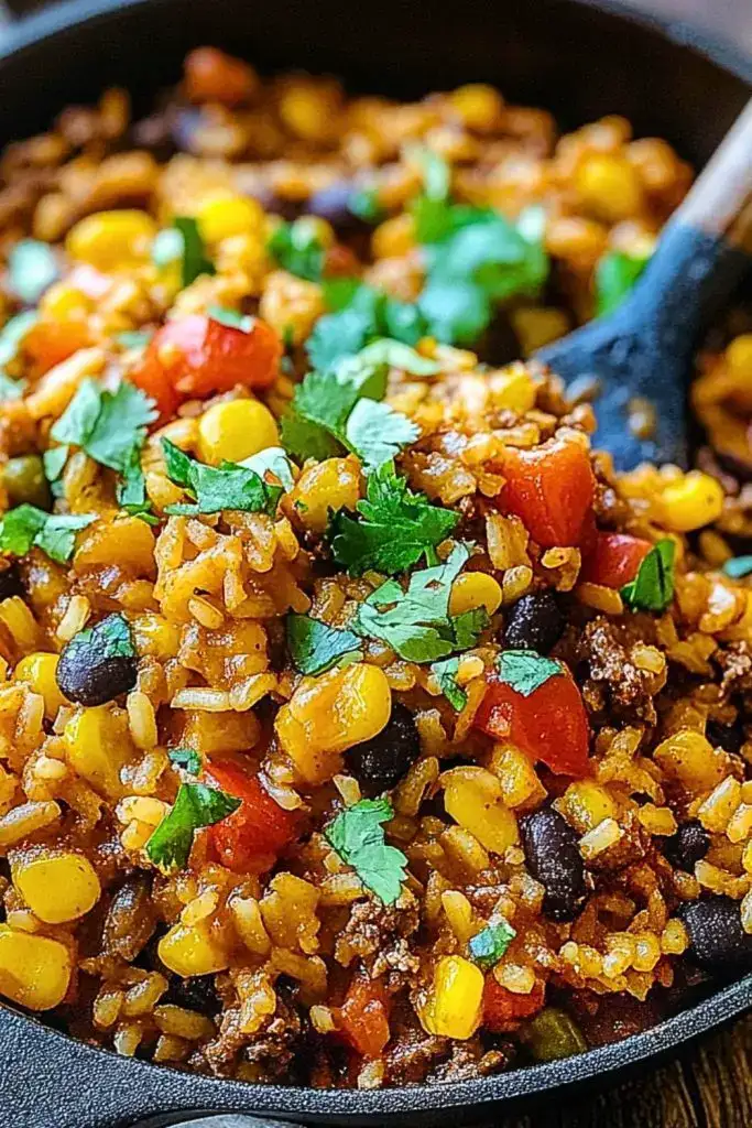 The Simple Mexican Beef And Rice Skillet is the perfect solution for a hearty, flavorful meal that brings bold, satisfying flavors straight to your dinner table with minimal effort. Tender ground beef is perfectly seasoned and mixed with fluffy rice, sweet corn, black beans, and colorful bell peppers—all cooked together in one pan for ultimate convenience. Every bite bursts with zesty Mexican spices and a comforting, homestyle vibe that feels like a warm hug.