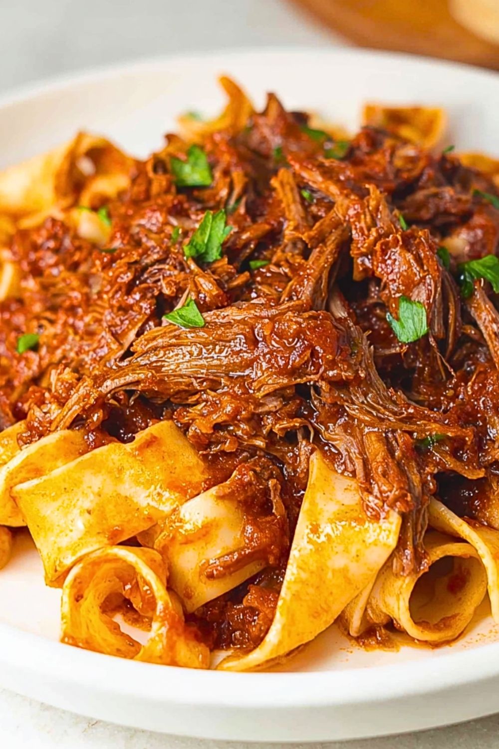 Cooking Time: The ragu needs a long, slow cook to develop its rich flavor and fall-apart beef texture. Cook on LOW for 8 hours or HIGH for 4–5 hours. The low-and-slow method yields the best texture, allowing all the ingredients to meld beautifully.