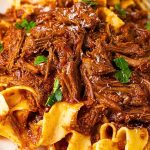 8. Cover and cook on LOW for 8 hours or HIGH for 4–5 hours, until beef is very tender.