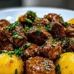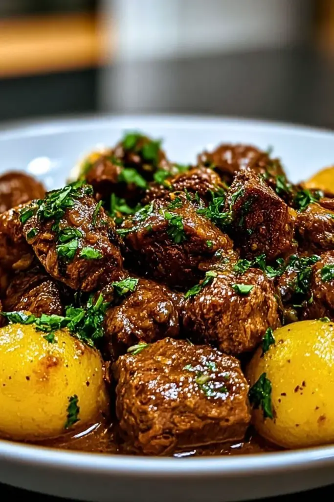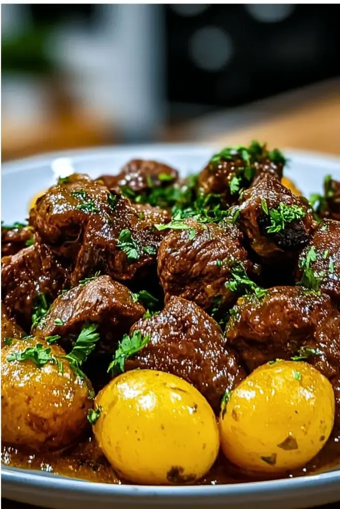 This recipe brings together tender beef bites and buttery baby potatoes in a slow cooker for a savory, comforting meal. Simmered in a garlic-infused butter sauce with herbs, each bite is rich with flavor and melt-in-your-mouth texture—perfect for cozy family dinners or meal prepping for the week.