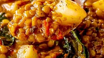 Cover and cook on LOW for 7–8 hours or on HIGH for 4–5 hours. The lentils should be tender but not mushy, and the broth should be rich and hearty.