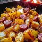 There’s something incredibly comforting about a hearty skillet meal, and smoked sausage and potatoes is one of my all-time favorites. The combination of crispy, golden-brown potatoes, flavorful smoked sausage, and caramelized onions makes for a dish that’s both simple and satisfying. Whether I’m cooking over an open fire on a camping trip or making a quick weeknight dinner, this recipe never disappoints.