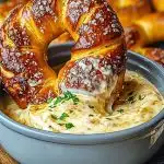 Soft Pretzels with Beer Cheese Dip is one of those feel-good, soul-warming snacks that always hits the spot. Whether you’re baking for a party, game night, or just craving something warm and cozy, this recipe brings pub-style comfort right into your kitchen. The pretzels are golden, chewy, and deeply satisfying, and the cheese dip—silky, rich, and just a little tangy—is pure dipping heaven.