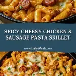Spicy Cheesy Chicken & Sausage Pasta Skillet
