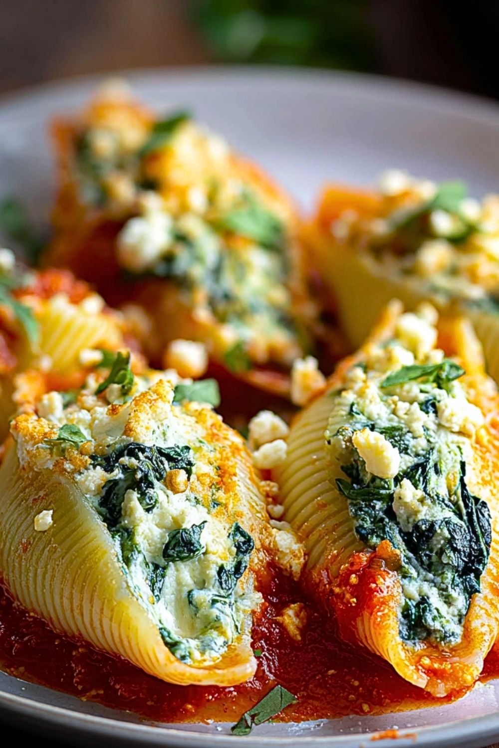 Preparation Time: You’ll need about 25–30 minutes to prep this dish. That includes boiling the shells, sautéing the spinach, and mixing the cheese filling. If you’re using pre-shredded cheese and frozen spinach, this can go even faster.
