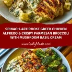 Spinach-Artichoke Greek Chicken Alfredo & Crispy Parmesan Broccoli with Mushroom Basil Cream