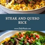 Got leftovers? No problem—Steak and Queso Rice holds up well if stored properly. Let everything cool to room temperature before storing. Place the rice and steak in separate airtight containers to preserve texture and flavor. The rice and queso mixture can be kept in the fridge for up to 4 days, and the steak for 3 days. When reheating, add a splash of milk or water to the rice to loosen up the queso and microwave in 30-second intervals, stirring in between. Reheat steak gently to avoid overcooking—try a quick pan warm-up or microwave at 50% power.