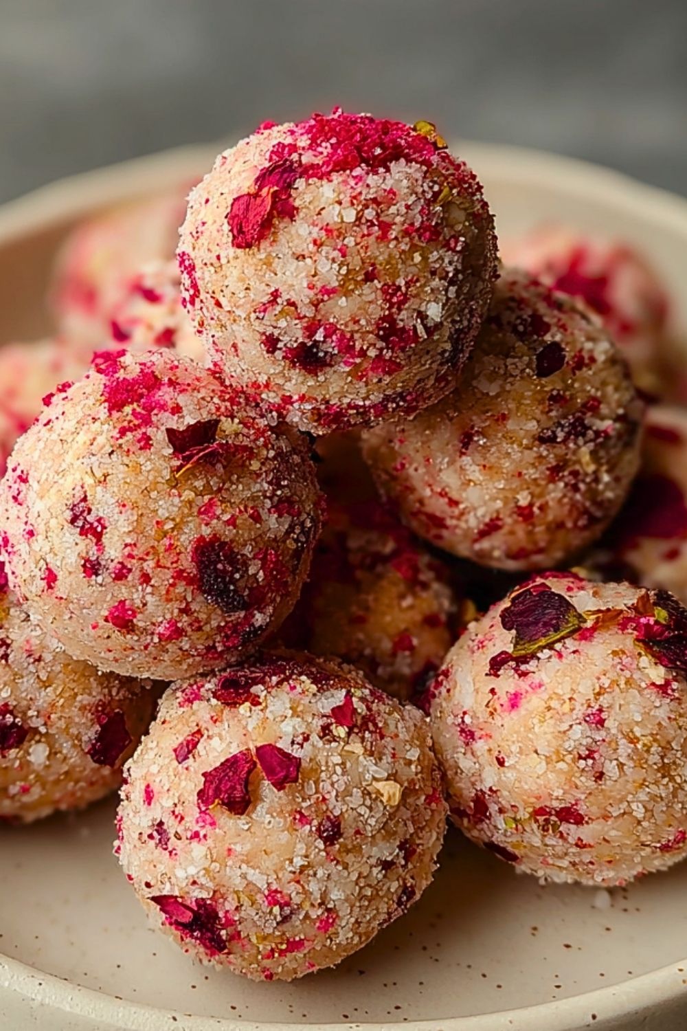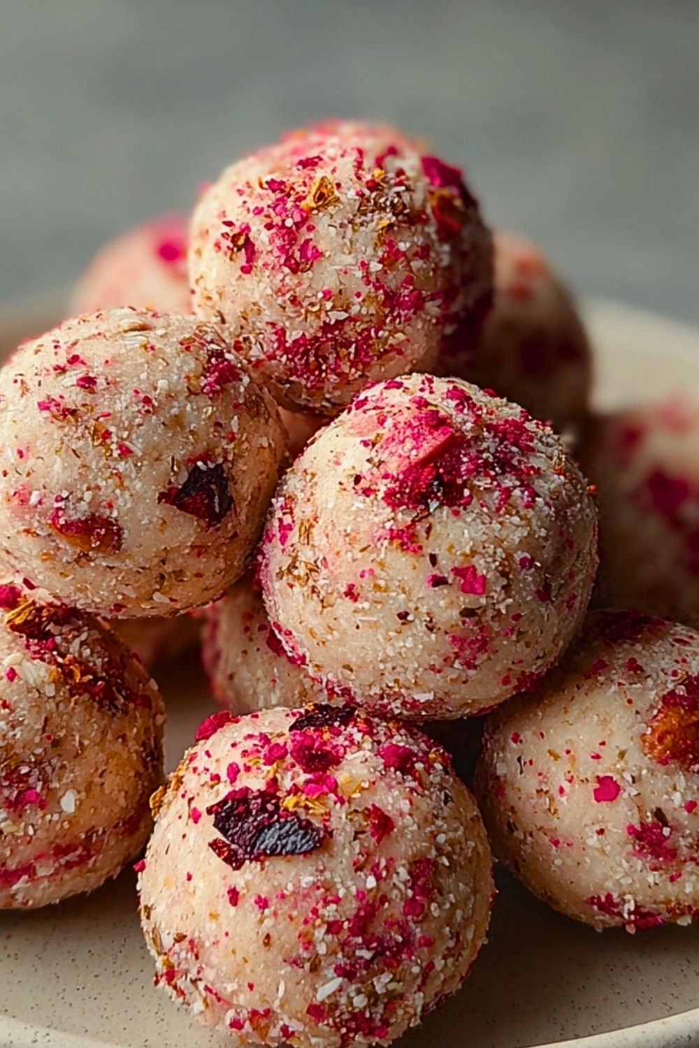 6. Optional: Roll the balls in a mix of crushed freeze-dried strawberries and almond flour for extra flavor and color.