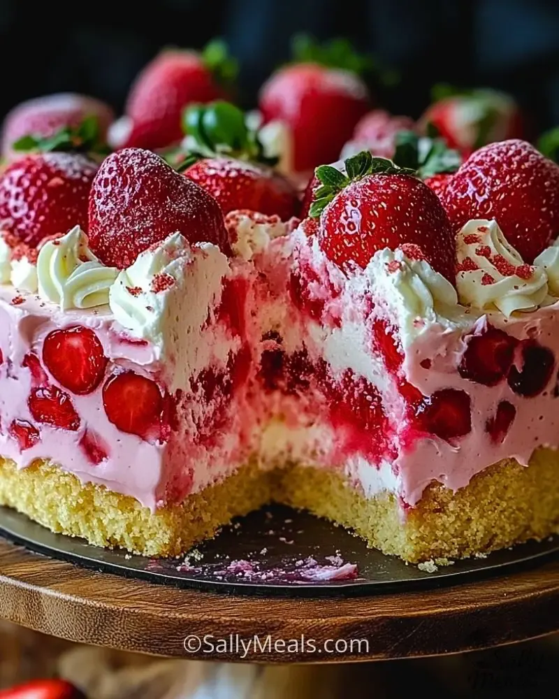 Every bite delivers a contrast of fluffy, creamy, and slightly crumbly layers, with strawberries stealing the spotlight in the most delightful way. Whether it’s for a spring gathering, a summer potluck, or a cozy weekend indulgence, this cake brings joy in every forkful. And the best part? You don’t need to be a pastry chef to make it look and taste like a masterpiece.