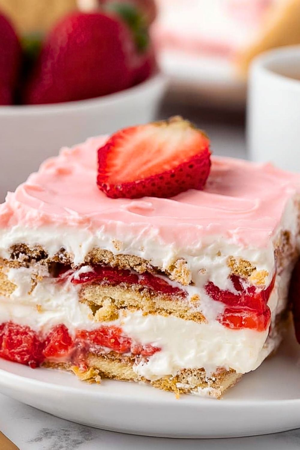 What I love most is how it hits that perfect note between refreshing and indulgent. The graham crackers soften just enough to mimic cake, while the cream filling stays light and dreamy. And the strawberries? They bring a natural sweetness and a juicy pop that ties everything together. Whether you’re hosting brunch or just want something sweet without heating up the kitchen, this dessert checks every box.