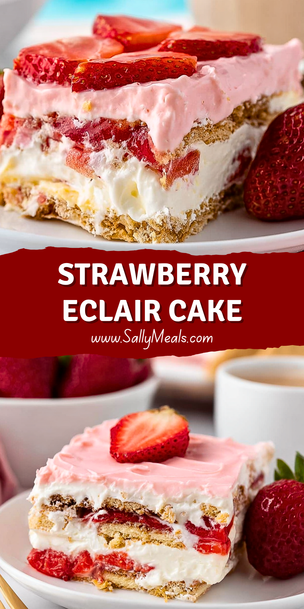 Keywords: strawberry dessert, no bake cake, easy dessert, summer dessert, strawberry eclair cake