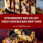 This Strawberry Red Velvet Oreo Cheesecake Drip Cake is what dessert dreams are made of. Layer upon layer of luscious flavor, this cake is a showstopper that combines the richness of red velvet, the creaminess of cheesecake, the crunch of Oreos, and the brightness of strawberries — all brought together with a silky white chocolate drip. It’s a full sensory experience, both visually stunning and absolutely indulgent on the palate.